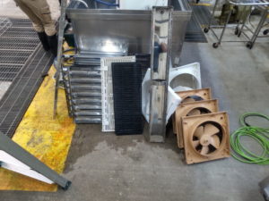 給食室の換気扇や空調機の清掃を行いました!