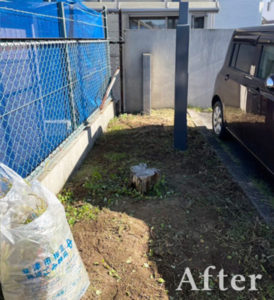 このスペースは駐車場の角ということもあり、飛んできたゴミが雑草の隙間に溜まってしまうことがあったので、これでゴミ溜まりの解消になるかと思います。