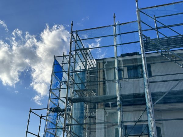足場を組んで作業するケースや、高所作業車を使用して清掃を行うケースなどです。