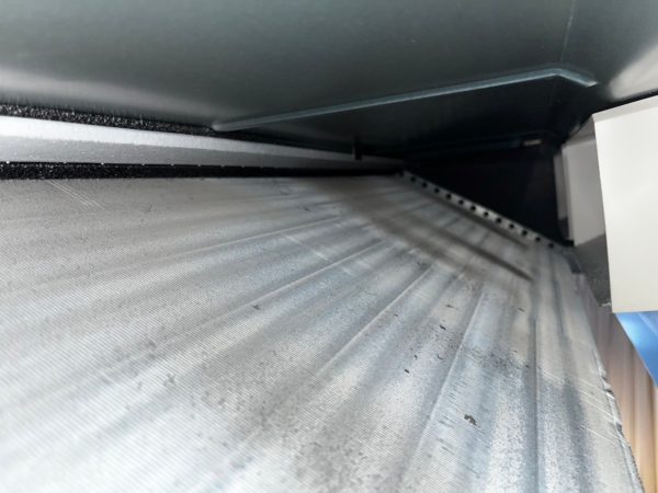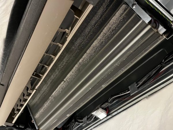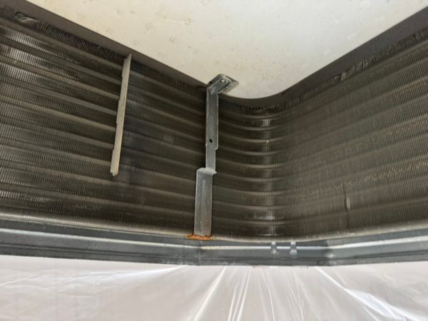 ↓こちらは空調機内部の熱交換器の洗浄前の写真です。