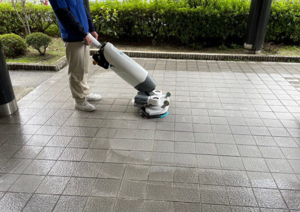エントランスのタイル清掃の様子