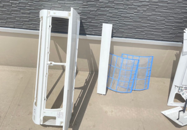 ケーシング→基盤→ドレンパン→ファンの順に脱着を行い、別の場所で洗浄します。