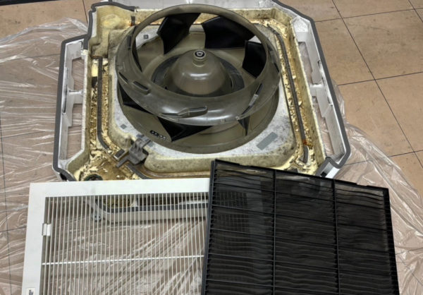 本日は、京都市左京区のディーラー様にて行った空調機(エアコン)清掃事例をご紹介します!