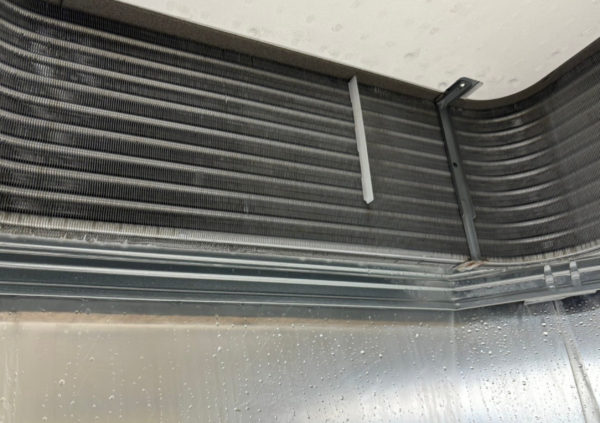 ↓こちらは空調機内部の熱交換器の洗浄前の写真です。
