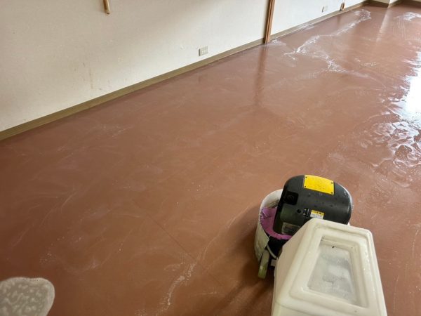 この作業をすることで、新たに塗布するワックスと床との密着を高めます。