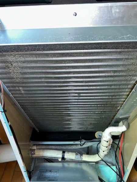 内部の熱交換機は、フィルターをすり抜けた埃やカビがびっしり付いていました。
