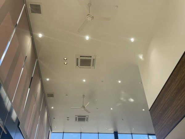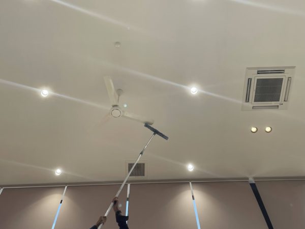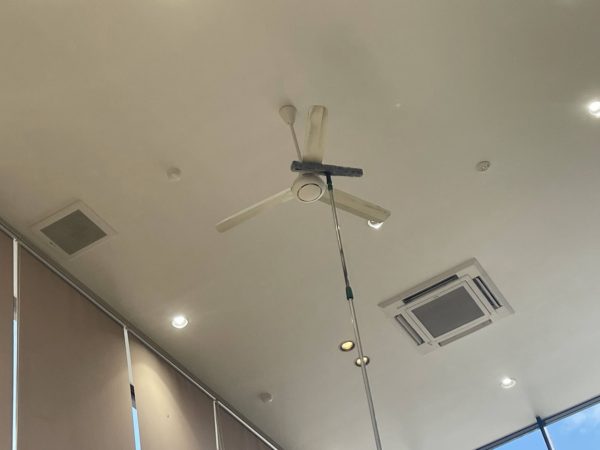 シーリングファンの下にあるテーブルや椅子は移動して作業を行いました。
