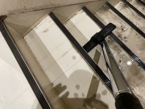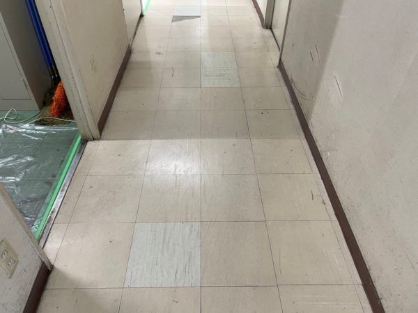 床面ワックス剥離清掃・階段清掃を行いました。