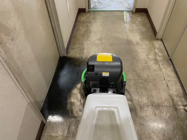 汚水を回収し、再度、水のみでポリッシャーがけを行い、