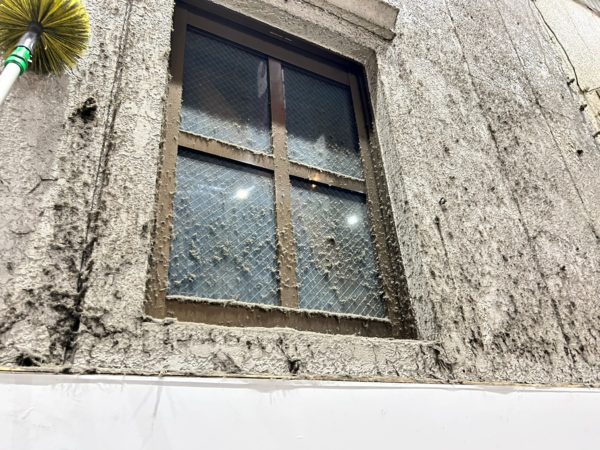高所の壁面洗浄ガラス清掃、シャッター清掃などを行いました。