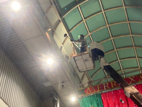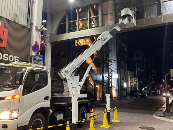 商店街のアーケード夜間清掃|高所作業車