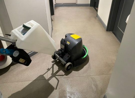 3. ポリッシャー掛けをします(角や隅は手作業で洗浄します)