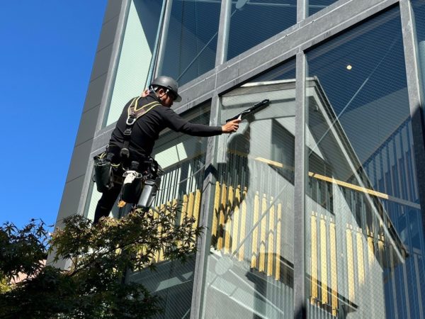 ・ロープ作業でどんな位置の窓もキレイに