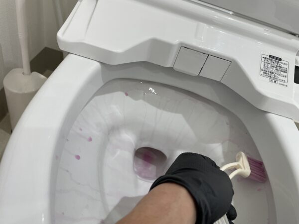 中性の一般的なトイレ用の洗剤やブラシを使っても落ちにくいのです。