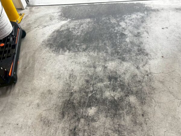 放置された汚れはコンクリートに浸透し、黒ずみやシミとなって残ります。