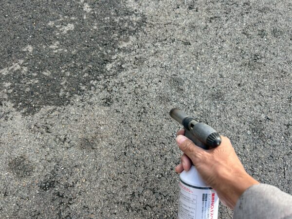 ステンレスブラシでアスファルト表面を軽く削り、見た目を整えます